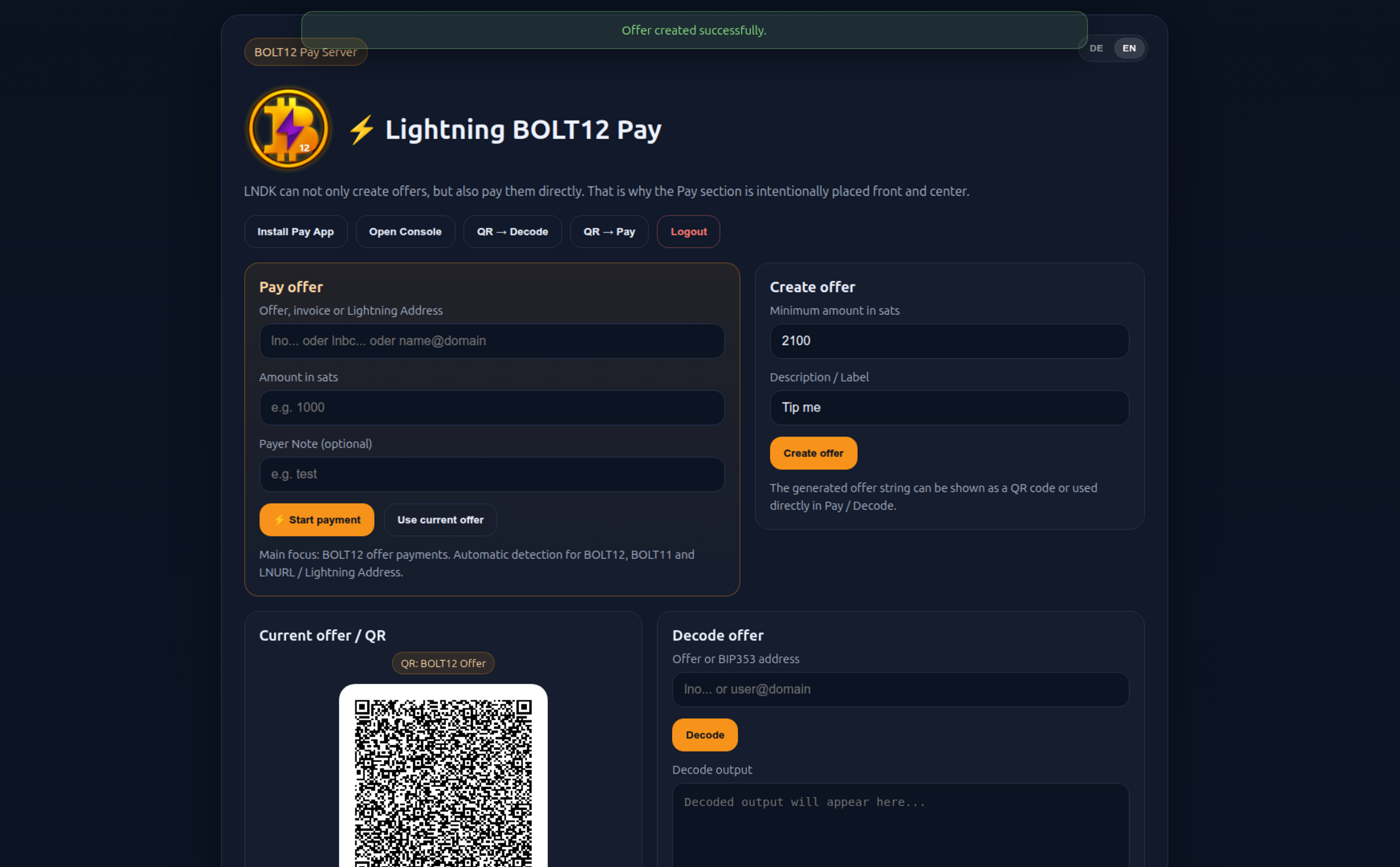 BOLT12 Pay requires a Lightning node with BOLT12 support.
