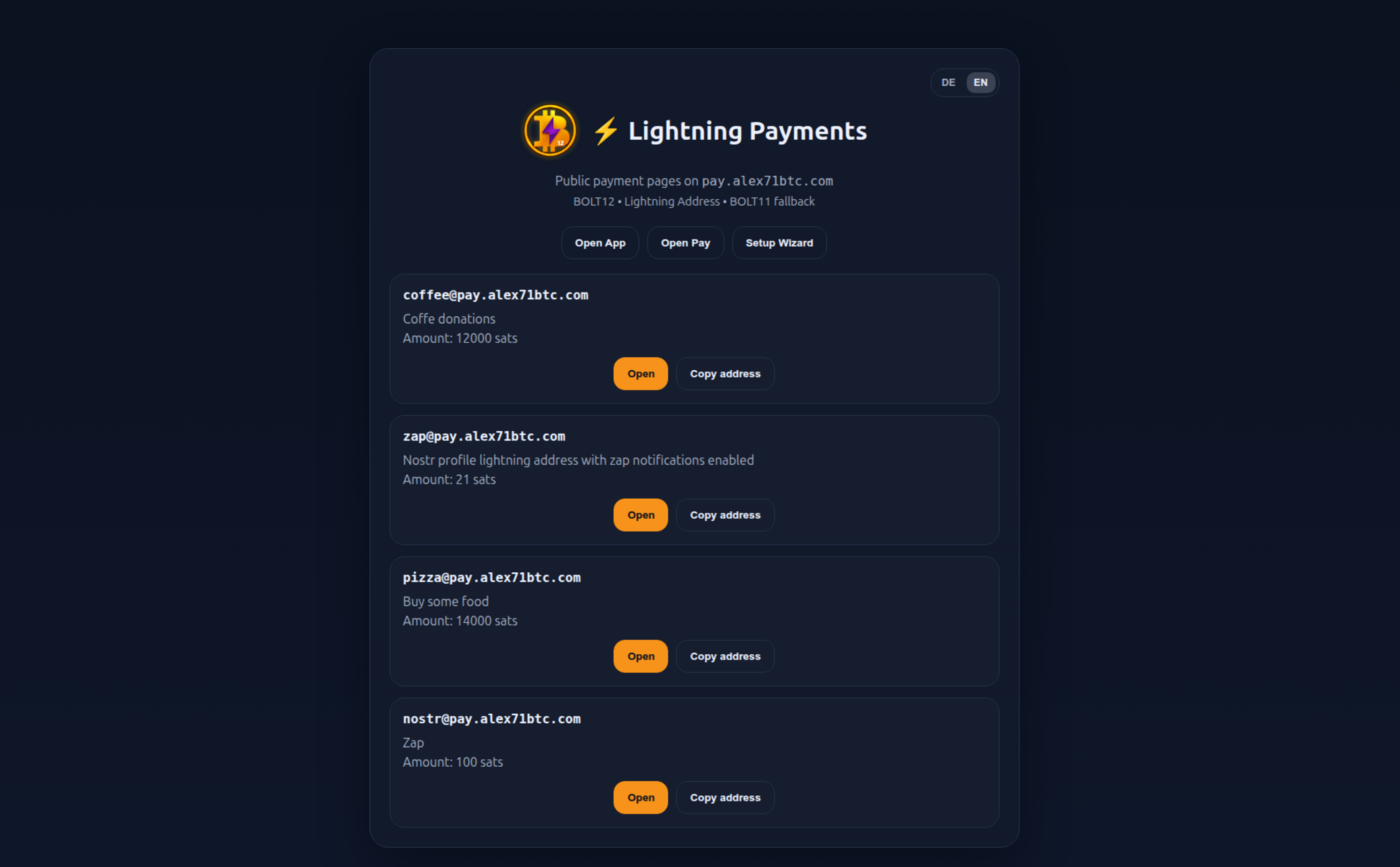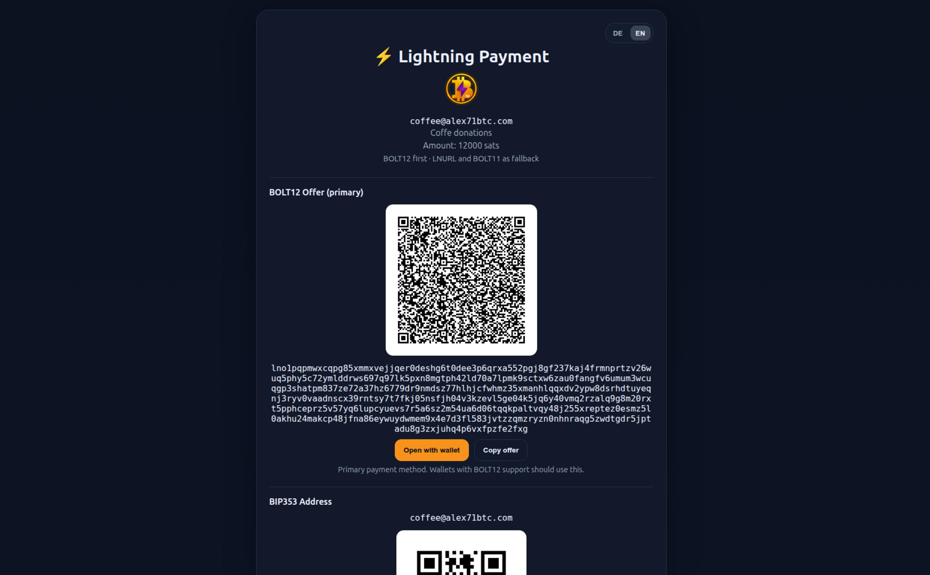 Self-hosted Lightning payment and identity server with next-generation BOLT12 support.