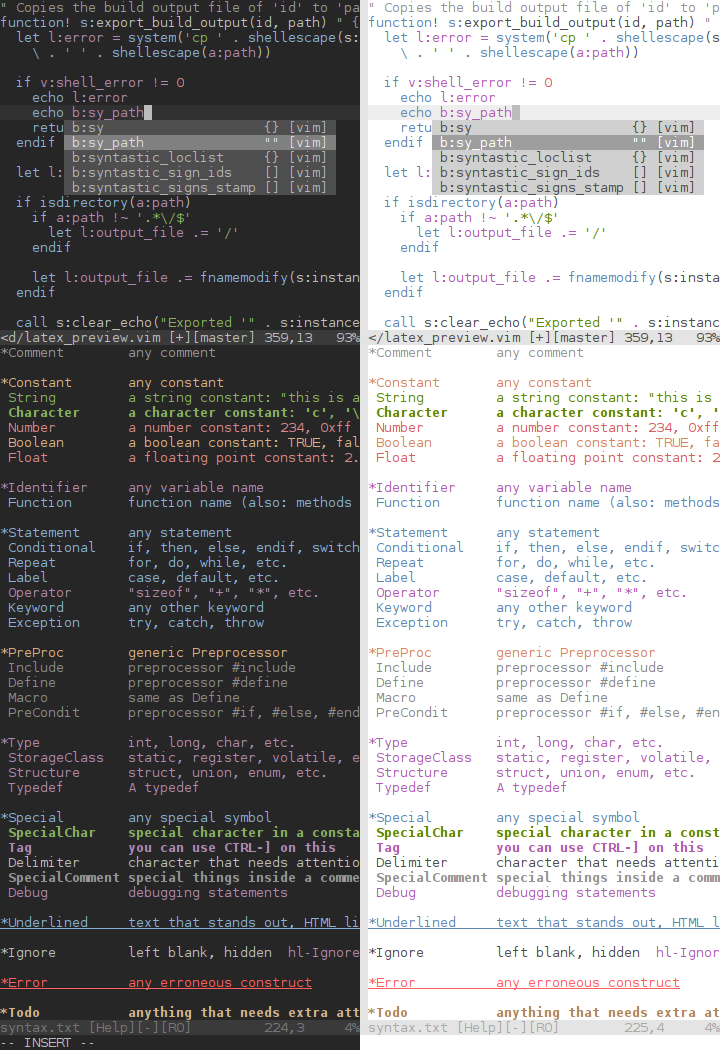 Two clear and unobtrusive colorschemes with support for countless plugins.