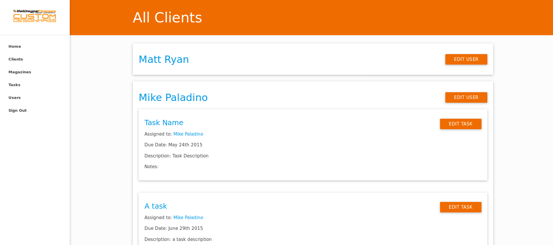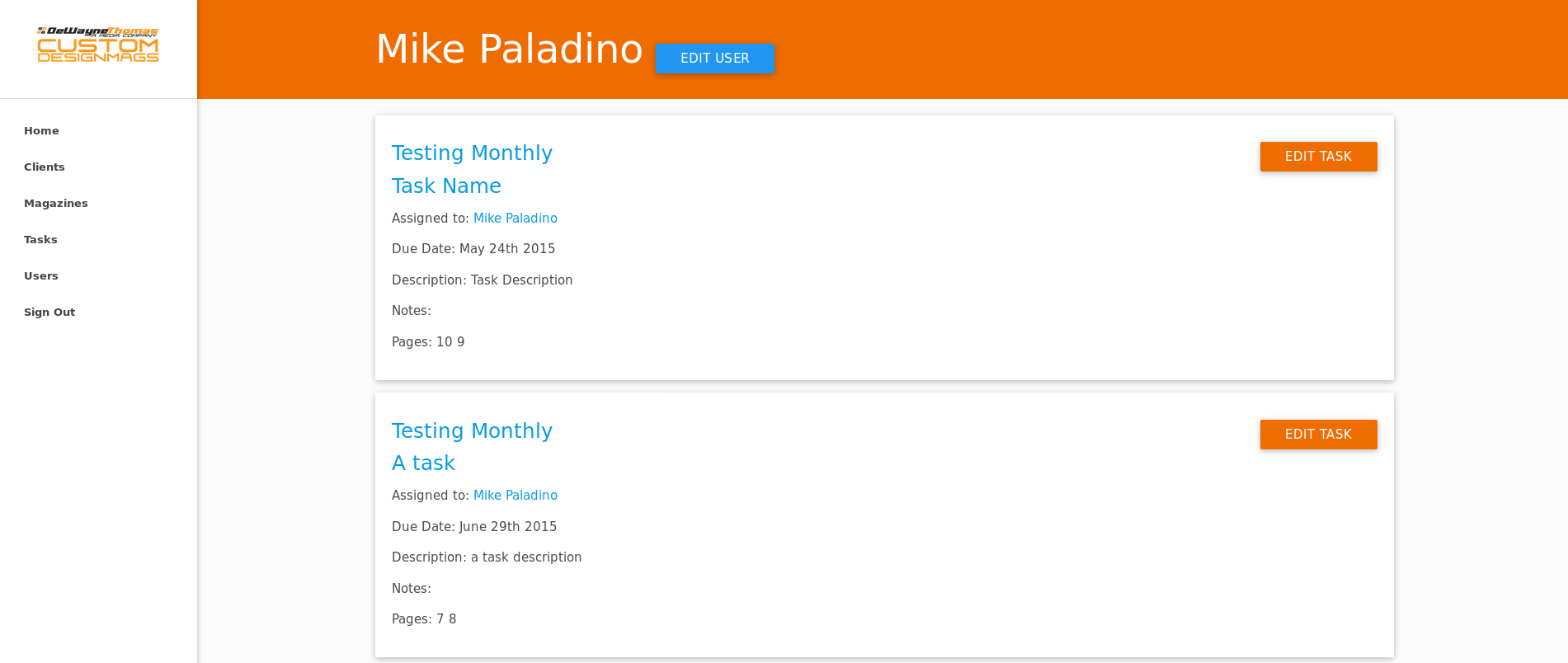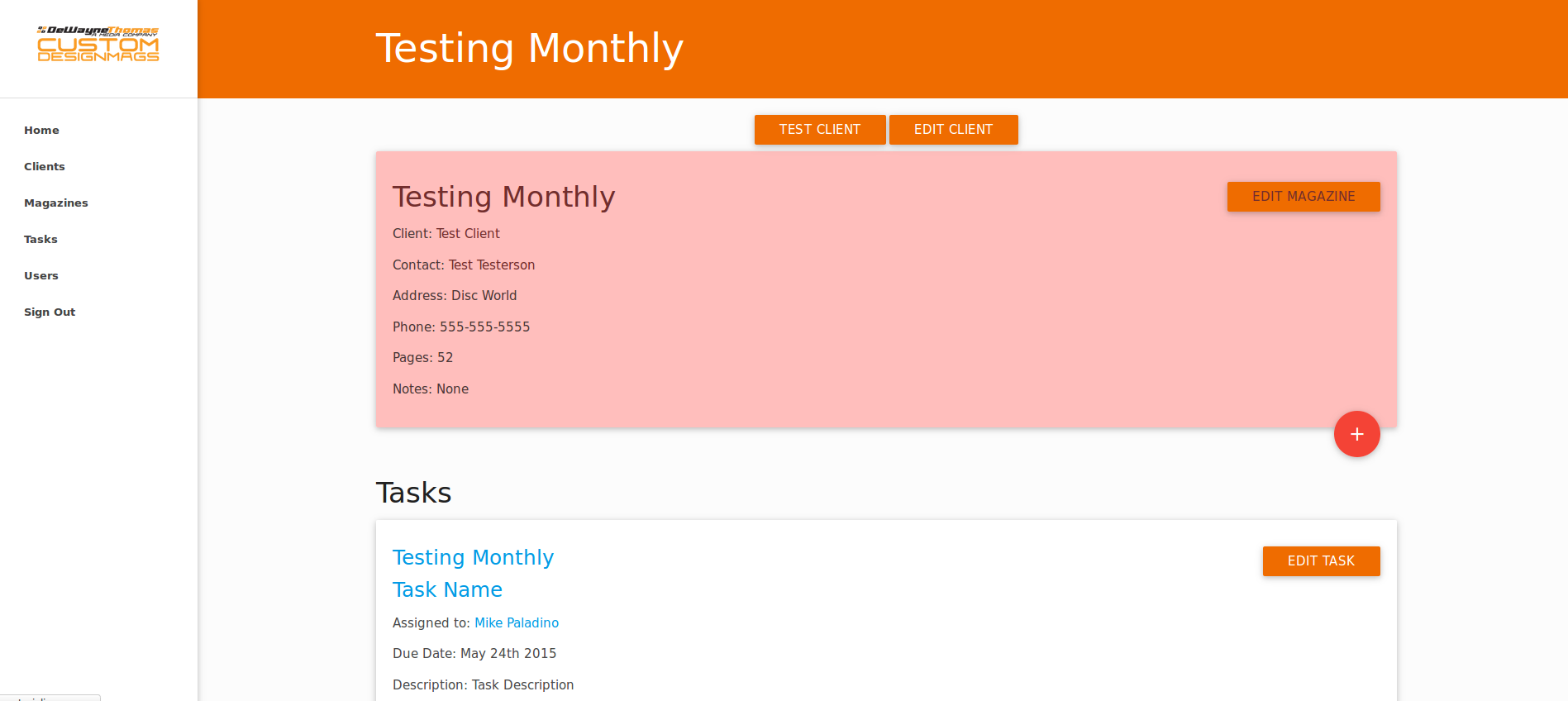 - View all the uncompleted tasks for each client/magazine on either the clients page, or their magazine page