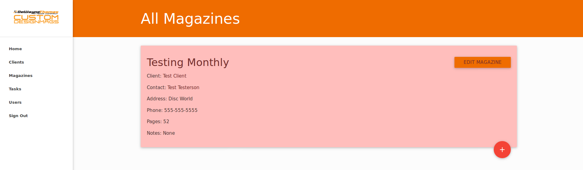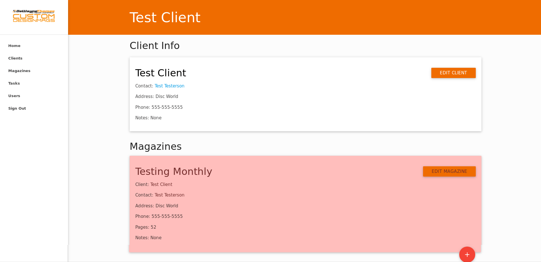 - Easily see data about all of your clients (company, location, contact info, phone, magazines, and notes)