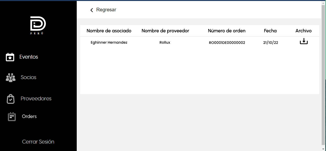 Cuando el usuario ingrese este tendrá acceso a las órdenes de compra que haya generado, estas estarán disponibles en el menú inferior al pulsar allí saldrá un listado de ordenes que tendrá los siguientes datos:
