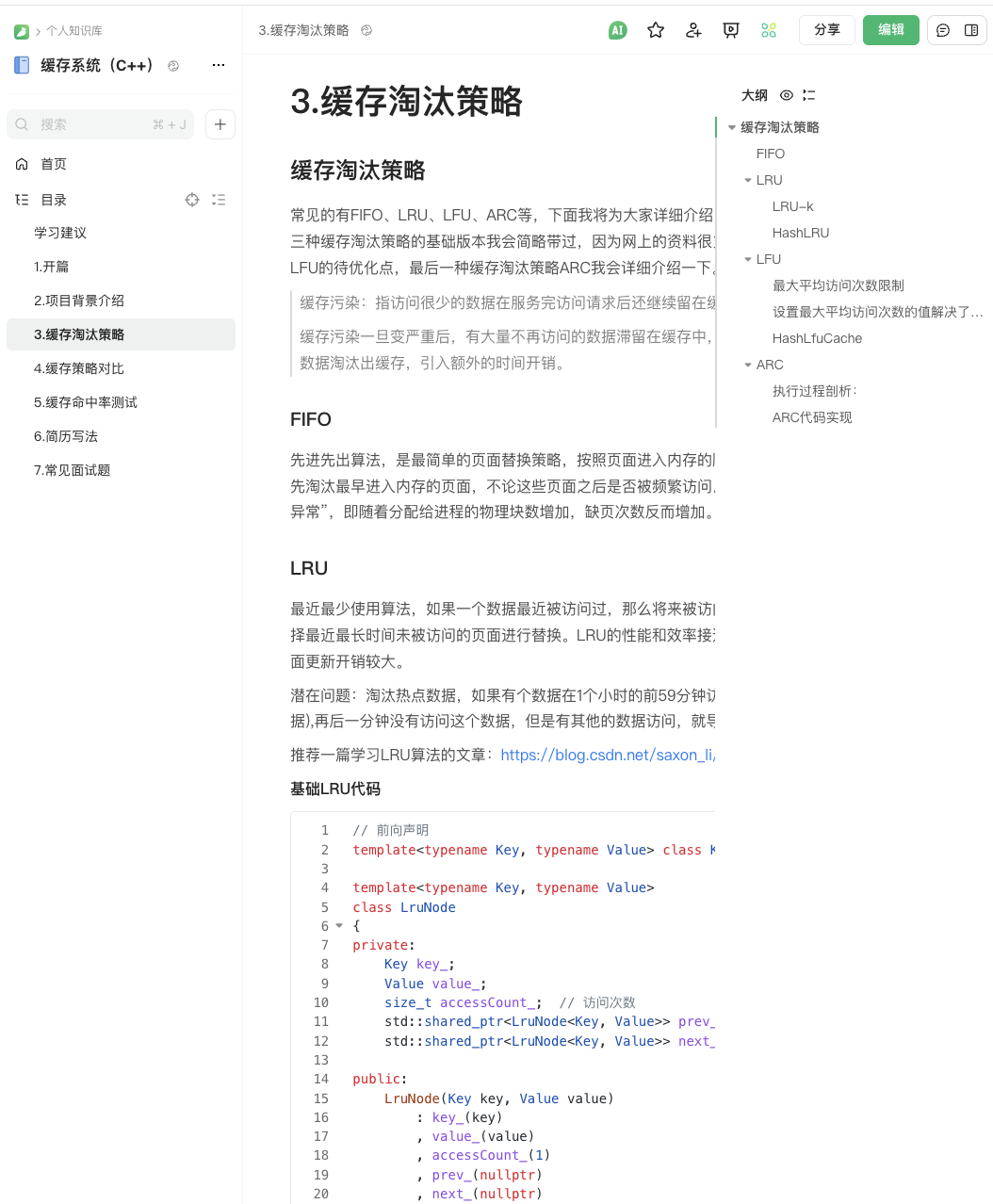 最近知识星球里里刚刚发布了 C++版本缓存系统,这个小项目。