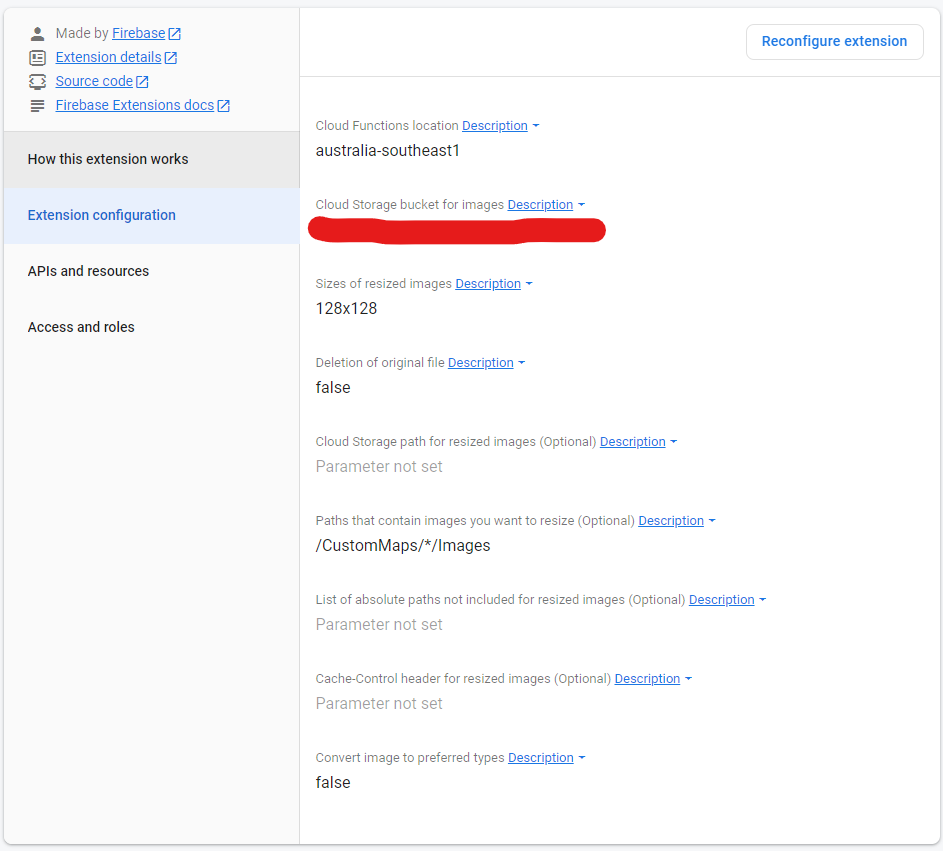 - A Firebase project which has the resize Image Extension activated and configured. Our settings