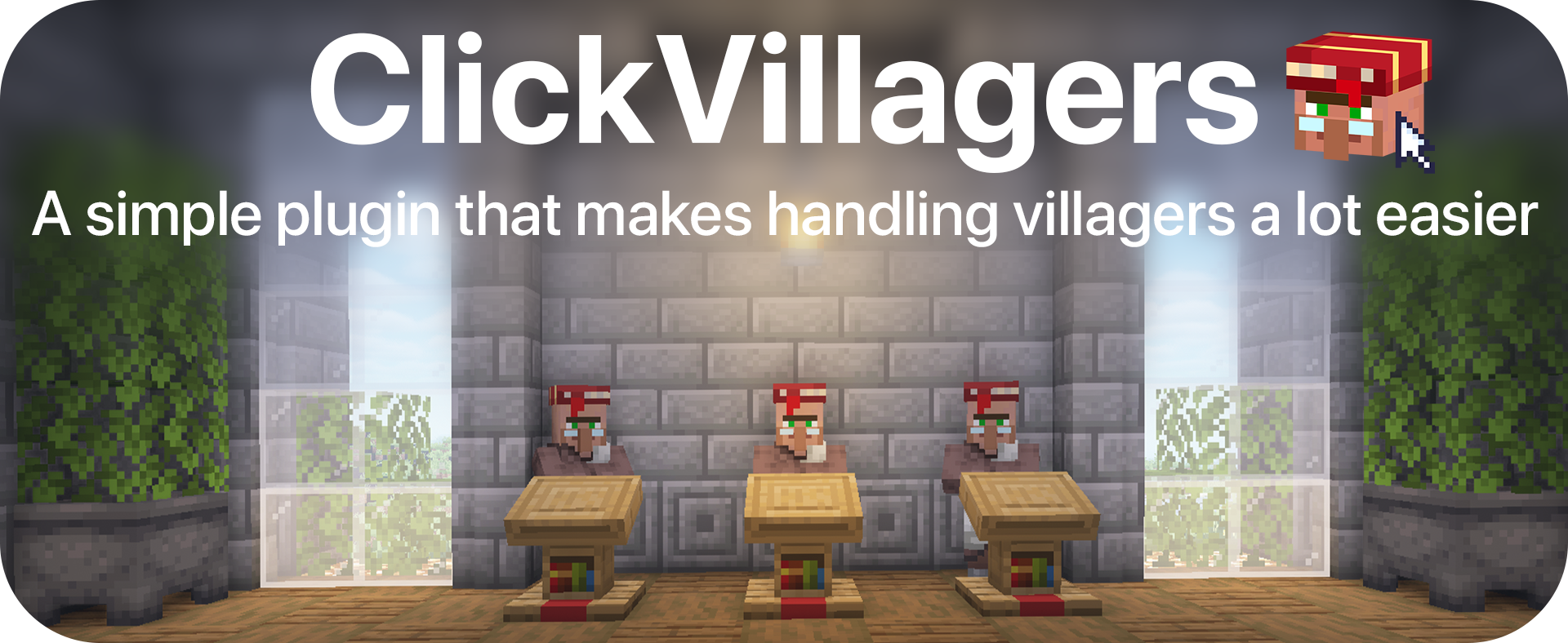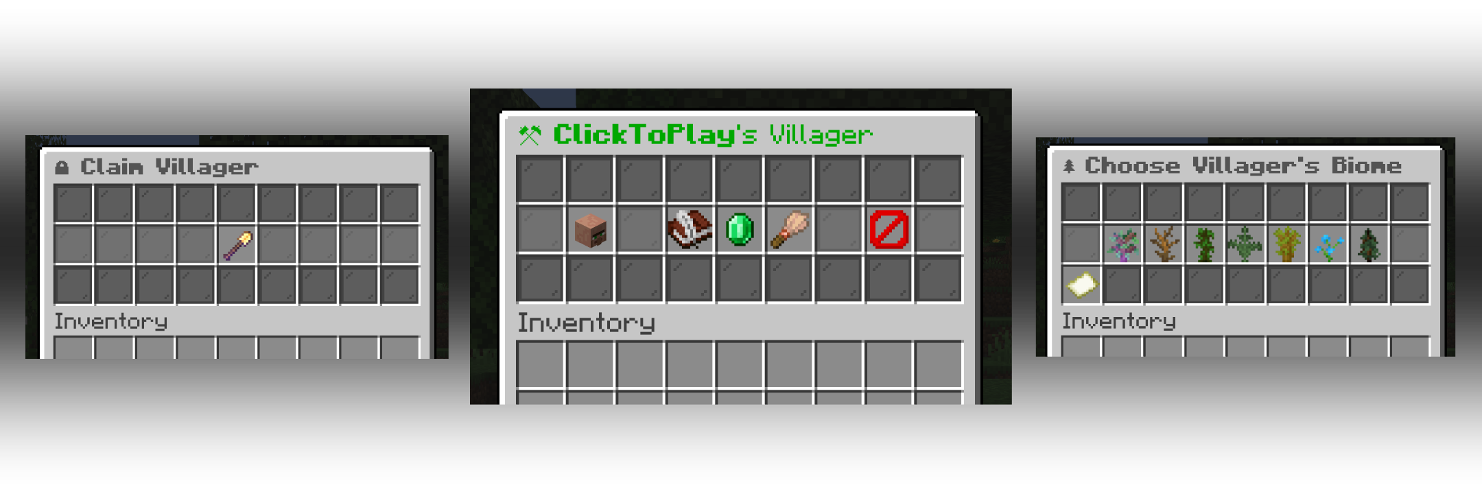 ClickVillagers is a simple quality of life plugin/mod that makes working with villagers much easier by allowing you to pick villagers up into your inventory, claim and protect them, change their biomes, and much more!