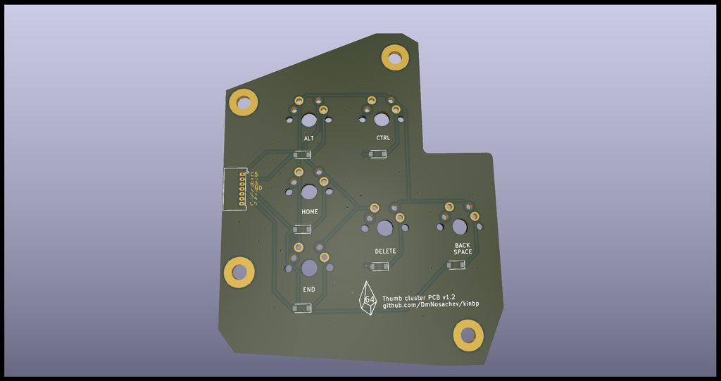- Connecting thumb cluster PCBs: 2x 10-pin angled 2.54mm headers.