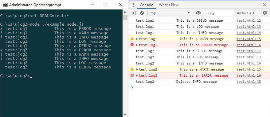 Note that any logging code written for either debug, loglevel or the console should be able to do it's logging just like it did before, but now using a ulog logger instead. This backward compatibility should make migrating from any of these to ulog very easy. And because this is just the anylogger API, you should even be able to migrate back to debug or loglevel without any changes at all, by just including the right adapter in your entry point. Of course once you get used to ulog, you will never want to go back! :p