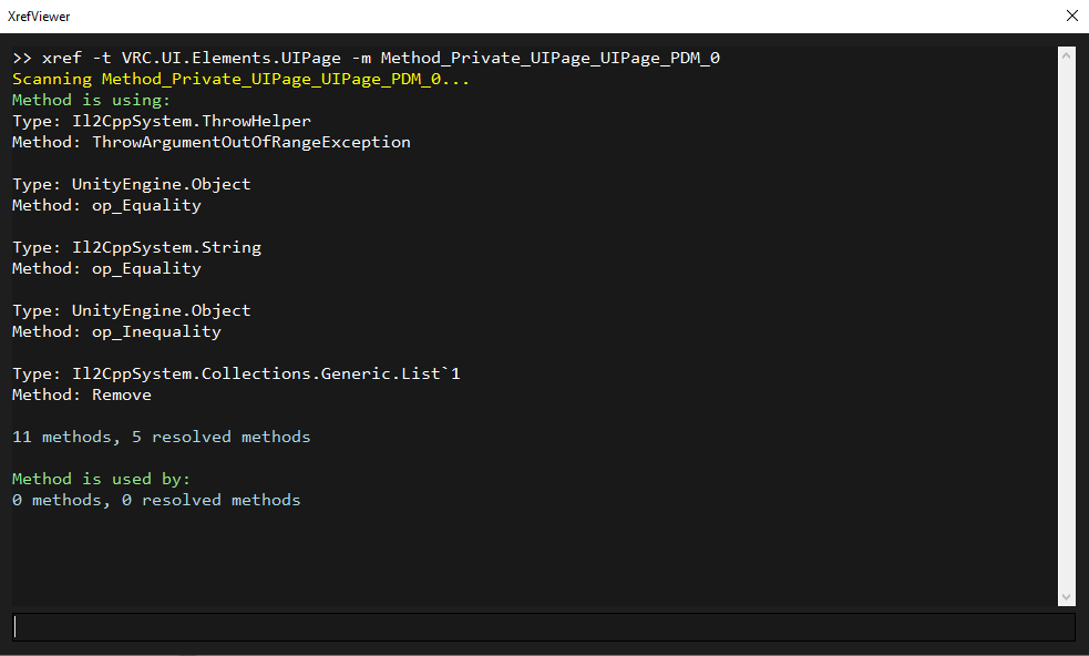 This mod utilizes xref scanning methods from Il2CppAssemblyUnhollower and provides user input based scans at runtime controlled by a external WPF application. It can be very helpful for modders to find methods via xref scanning to have persistence against game updates.
