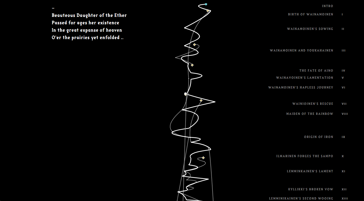 Reflection text on this project and the other two digital narrative experiements with the Kalevala can be found here.