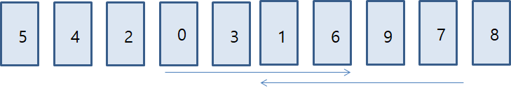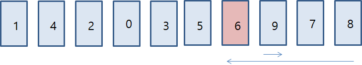 ์ผ์ชฝ์์๋ถํฐ โ5โ๋ณด๋ค ํฐ ๋ฐ์ดํฐ๋ฅผ ์ ํํ๋ฏ๋ก โ7โ์ด ์ ํ,์ค๋ฅธ์ชฝ์์๋ถํฐ โ5โ๋ณด๋ค ์์ ๋ฐ์ดํฐ๊ฐ ์ ํ๋๋ฏ๋ก โ4โ๊ฐ ์ ํ โ ๋ ๋ฐ์ดํฐ์ ์์น ์๋ก ๋ณ๊ฒฝ