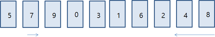์ผ์ชฝ์์๋ถํฐ ํผ๋ฒ๋ณด๋ค ํฐ ๋ฐ์ดํฐ๋ฅผ ์ฐพ๊ณ ,์ค๋ฅธ์ชฝ์์๋ถํฐ ํผ๋ฒ๋ณด๋ค ์์ ๋ฐ์ดํฐ๋ฅผ ์ฐพ์ - ํฐ ๋ฐ์ดํฐ์ ์์ ๋ฐ์ดํฐ์ ์์น๋ฅผ ์๋ก ๊ตํ