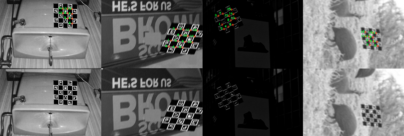 Top our method, Bottom cv2.aruco for comparison.