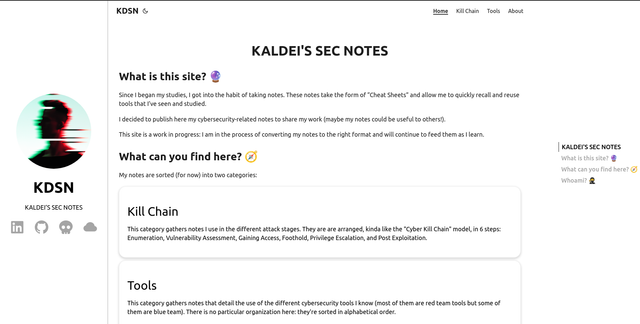 My notes about cybersecurity and stuff. They are in "Cheat Sheets" format and allow me to quickly recall and reuse tools and technics I've encountered. Could be useful to someone, so I share them.