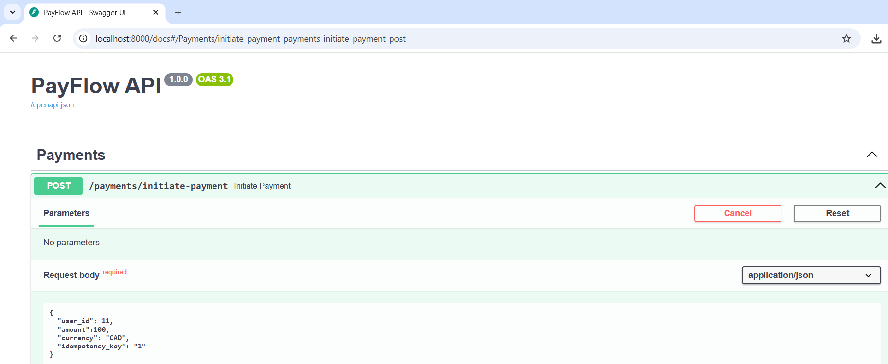 /initiate-payment– Idempotent payment initiation/payment-status/{payment_id}– Track payment status/reconcile– Batch reconciliation for failed/incomplete payments- Async retry logic with exponential backoff