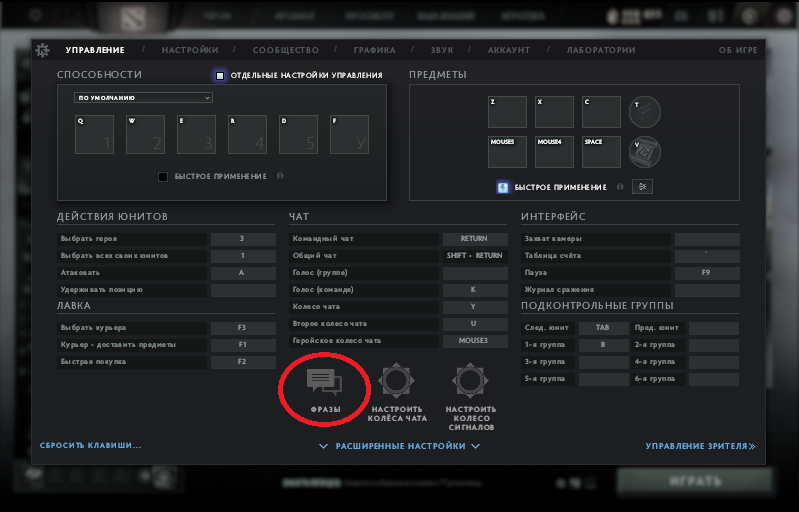 Зайдите в настройки игры, внизу посередине будет "Фразы".