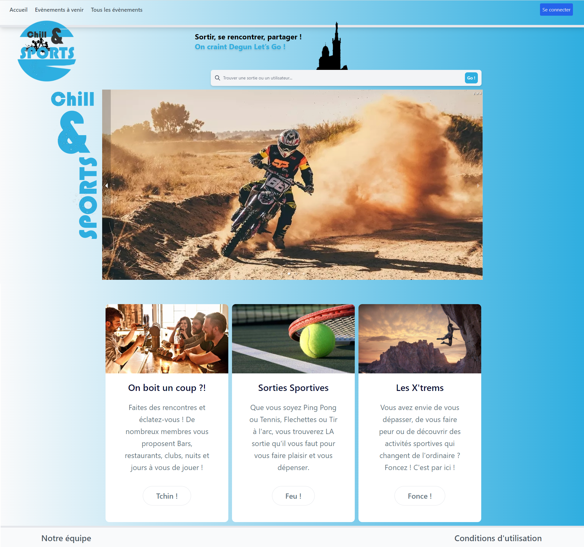 Projet réalisé dans le cadre de la fin de ma formation Epitech. Site de mise en relation entre personnes souhaitant réaliser des activités sportives. Technologies : - MongoDB - Nextjs - Tailwind CSS
