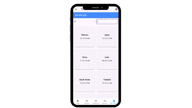 - Giờ thế giới 🌍: Hiển thị thời gian thực của các quốc gia trên thế giới.