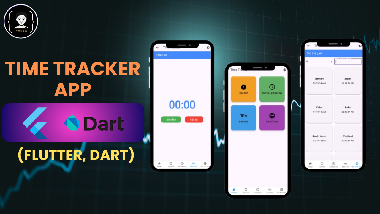 Ứng dụng "Time Tracker" giúp người dùng theo dõi thời gian hiện tại, hẹn giờ, đếm ngược và sử dụng các chức năng khác như xem giờ các quốc gia trên thế giới, chuyển đổi giữa chế độ sáng và tối, v.v. Ứng dụng cung cấp giao diện người dùng thân thiện và dễ sử dụng.