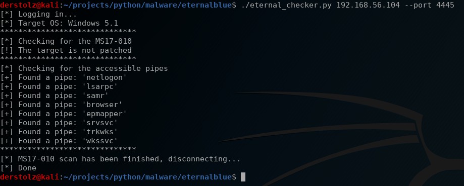 eternalblue A fixed version of the MS17-010 (EternalBlue) exploit. This project contains a scanner and an exploit for the given SMB vulnerability.