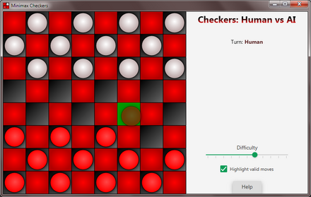 Checkers: Human vs AI Welcome, fellow human. Ready to crush the AI uprising via the medium of checkers? A clean, simple, drag-and-drop checkers/draughts game with an α-β minimax AI Download? Download. Also see the releases page. Built with JavaFX JFoenix