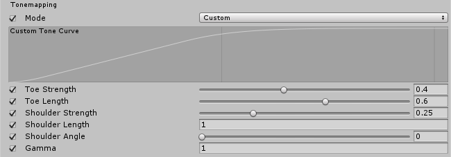 | Toe Strength | Affects the transition between the toe and the mid section of the curve. A value of 0 means no toe, a value of 1 means a very hard transition. |