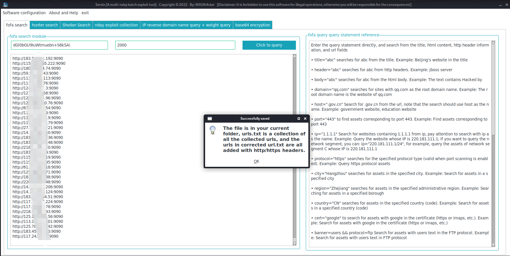 urls.txt,corrected url.txt,host.txtwill be generated in the same level directory of the software, and thecollected original url,url with http/https header addedandWebsite IP onlywill be saved respectively. -