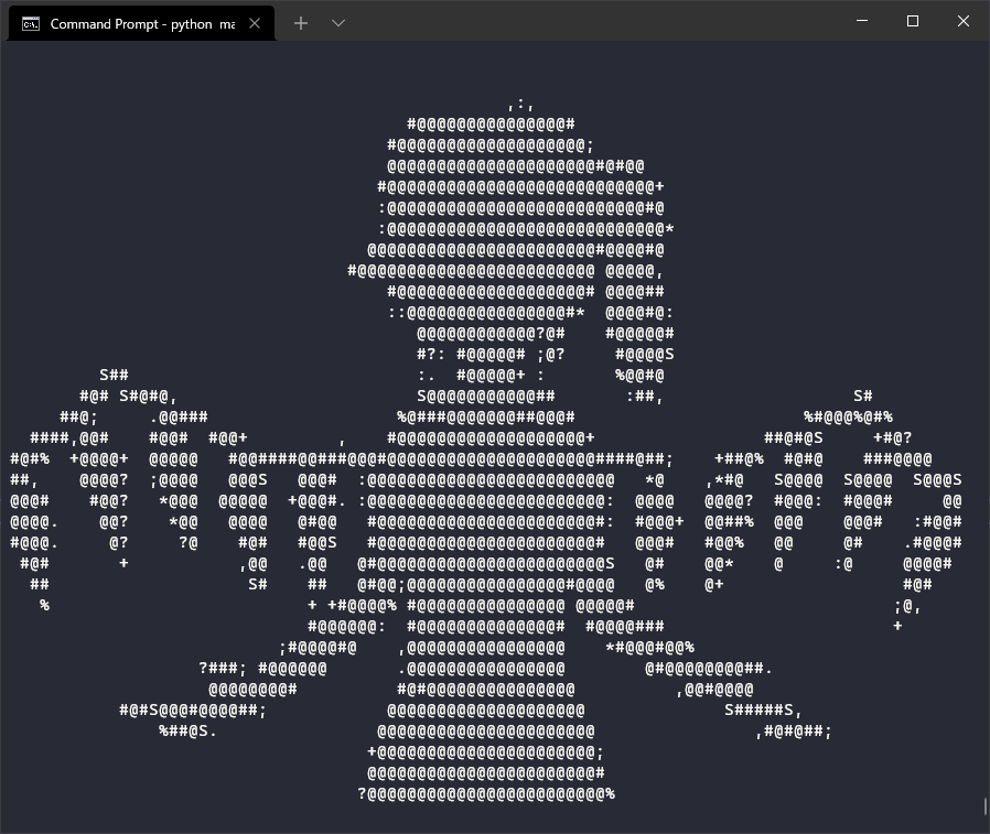 Bad Apple Play an ASCII version of Bad Apple (or any YouTube video) in the new Windows Terminal using Python Running in a virtual environment (Windows) Create the virtual environment python -m venv venv Activate the virtual environment venv\Scripts\activate.bat Install dependencies pi# install -r requirements Run the program python main.py
