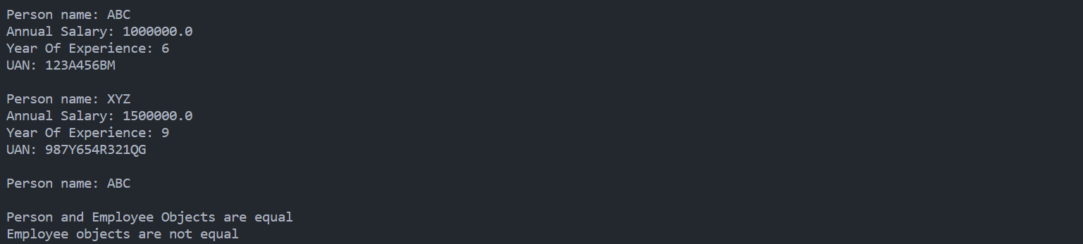 Employeeclass and one object ofPersonclass and do the following:EmployeeobjectsBeta Was this translation helpful? Give feedback.