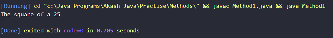 System.out.println("square of the number is :"+square(squareOfNumber));