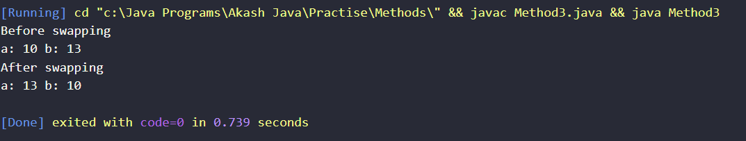 System.out.println(" After Swapping a: " + a + " b: " + b);