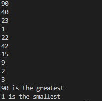 System.out.println("max element is " + max + " min element is " + min);
