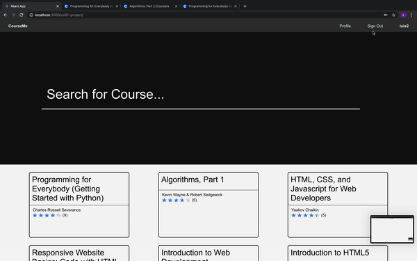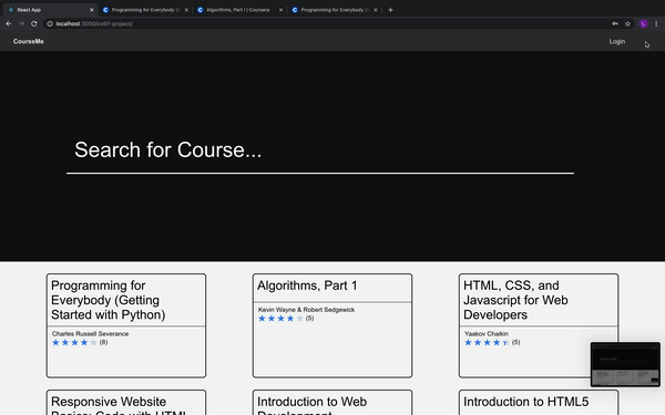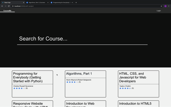 Description: For the project we decided on a website application where users can discover computer science courses that are applicable to the field they want to learn more about. Users who create an account can save, add, and rate courses, as well as leave reviews.