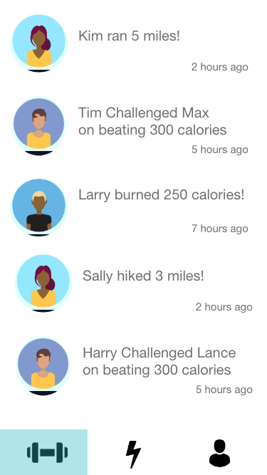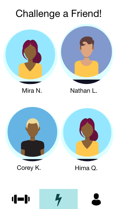 - Challenge Screen - User can select a friend to challenge them on a workout.