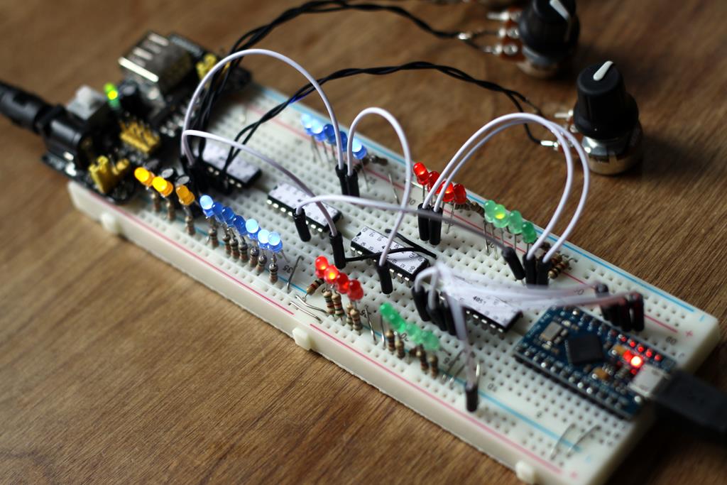 In this workshop, participants will learn how to utilize the functions of several chips from the CMOS family including the basic Boolean gates (AND, NOR, XOR, etc.), Schmitt trigger oscillators, frequency dividers, shift registers, and multiplexers. We will cover techniques for connecting the inputs and outputs of these chips to generate patterns for controlling software. Protocols for communication covered will include UART (Arduino serial), MIDI, and OSC. Finally, we will connect all projects together to form a giant modular controller.