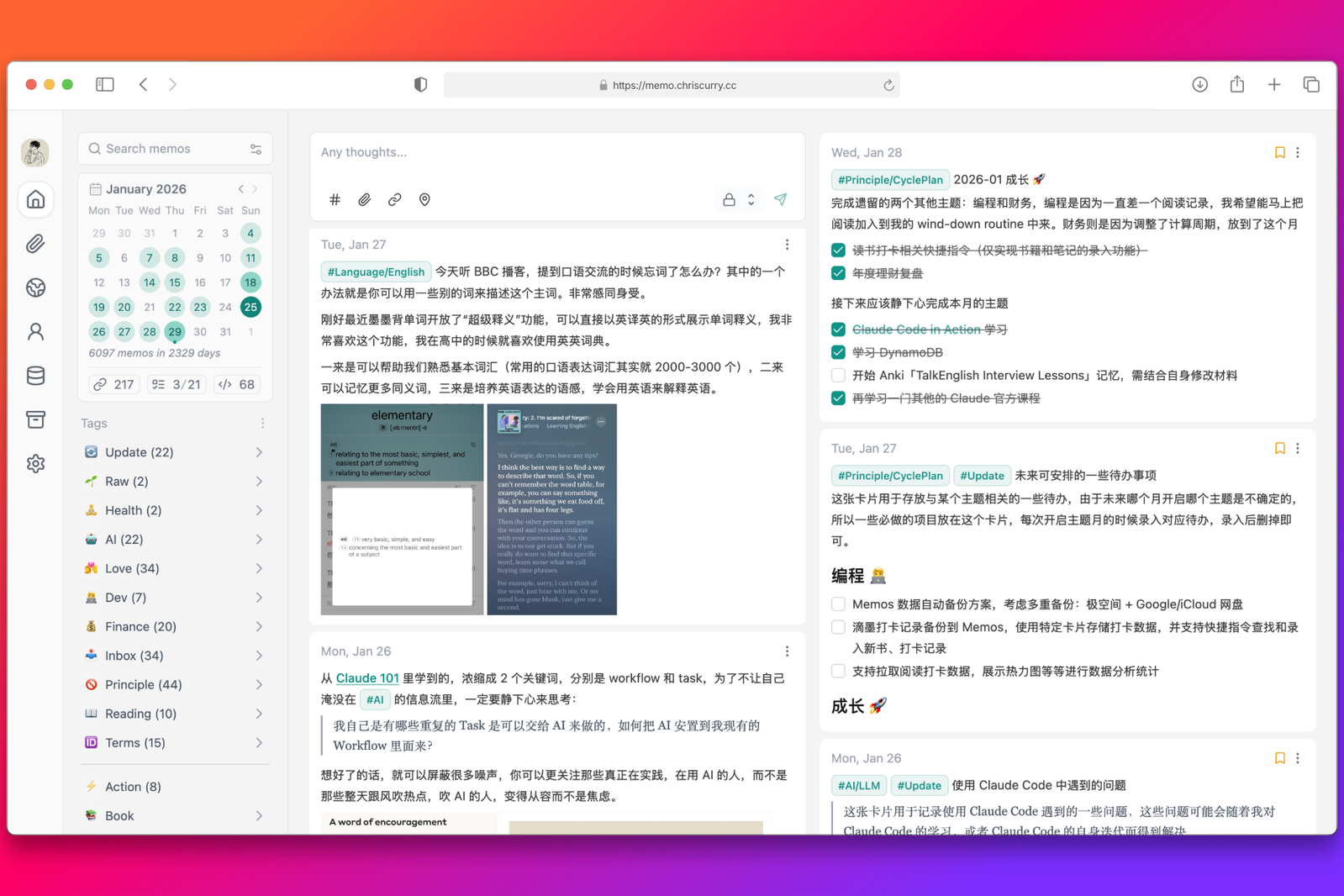 - Tag Organization - Organize memos with tags, pin important tags, add emoji icons