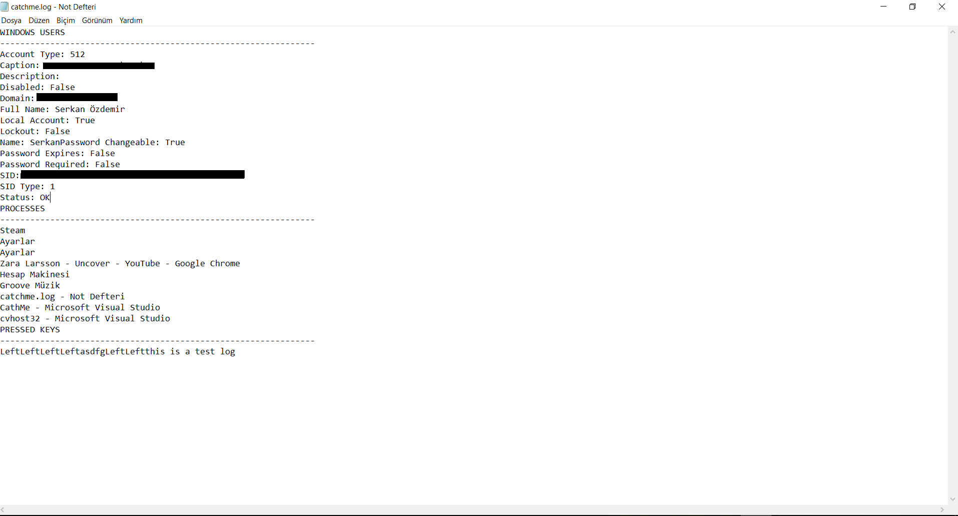 cvhost32 This keylogger has been developed for only penetration and reverse engineering tests. Log path: C:\Users%USER NAME%\AppData\Roaming\catchme.log Test Log Virus Total