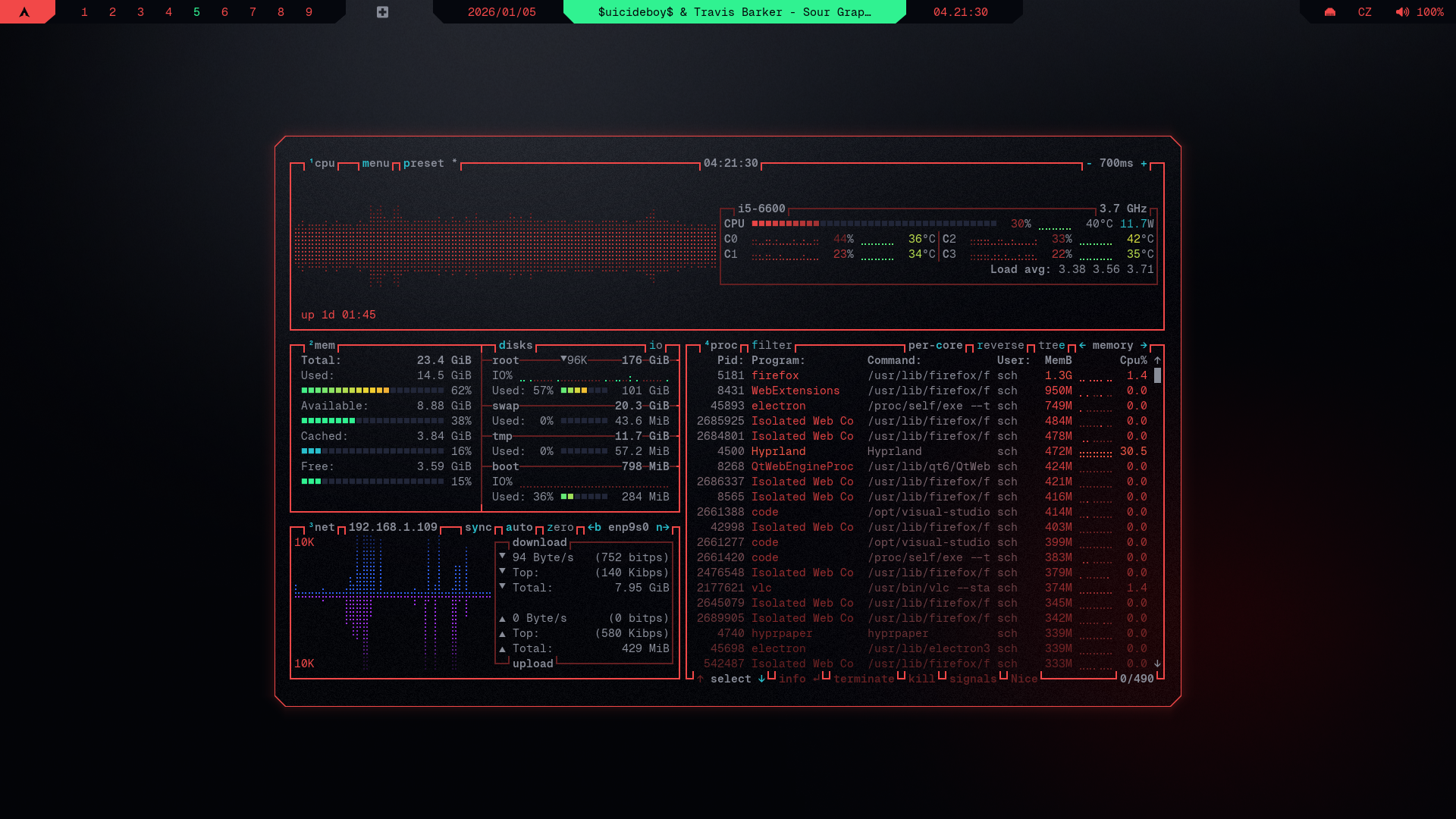 sudo pacman -S btop - See Installation Guide if you're coming from cybr-hyprland and haven't set up prerequisites yet