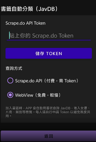 - Offline database – Automatically fetches metadata (tags, cast, release date) from JavDB