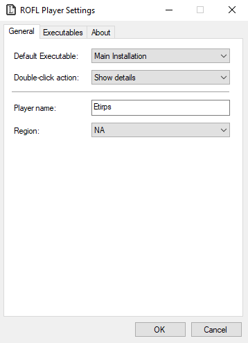 - The following window will then appear, Set the player name field so ROFLPlayer can highlight you name when viewing replay details. Set the region field so the program can properly load the match history website when using the "View online" button.