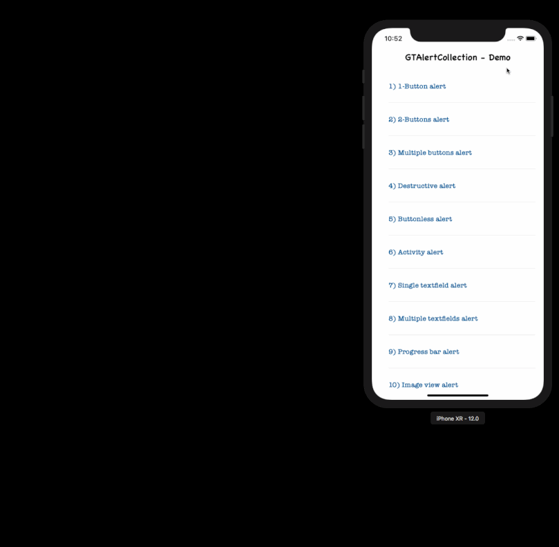 GTAlertCollection implements alert controllers based on the UIAlertController class. It supports and provides a variety of alert types: