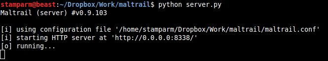 Same as for Sensor, when running the Server (e.g. python server.py) for the first time and/or after a longer period of non-running, if option USE_SERVER_UPDATE_TRAILS is set to true, it will automatically update the trails from trail definitions (Note: stored inside the trails directory). Its basic function is to store the log entries inside the logging directory (i.e. option LOG_DIR inside the maltrail.conf file's section [All]) and provide the web reporting interface for presenting those same entries to the end-user (Note: there is no need install the 3rd party web server packages like Apache):