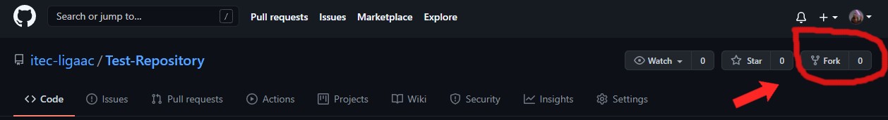 - Pentru început,trebuie să dai Fork la repository-ul cu numele echipei tale / proiectului tău cu ajutorul butonului de sub profilul propriu (colț dreapta sus), pentru a îți crea o clona a proiectului iTEC in profilul tău.