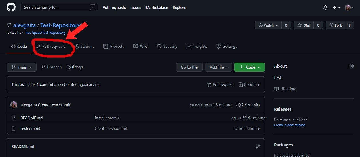 - Verificați ca ruta de la ”base repository” să fie itec-ligaac/ și apoi apasă pe Create Pull Request.