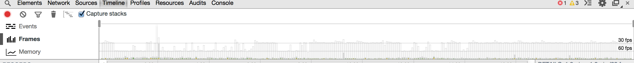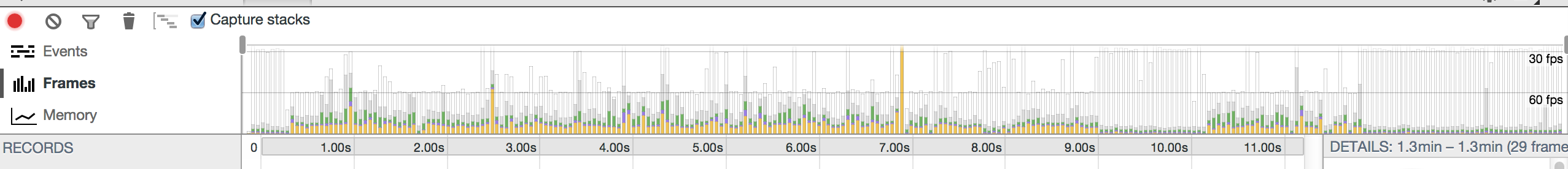 As I quickly discovered, jQuery's $(window).scroll method took up more than half of the rendering time (seen in yellow.) It's very inefficient and causes severe lagging whenever a user tries to scroll.