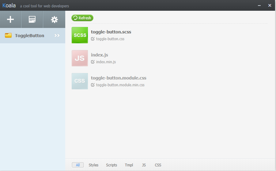 Open the folder in the app and click on the .scss file to set up the compiler on the right sidebar like so: