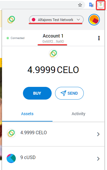- Switch to the alfajores testnet in the CeloExtensionWallet.