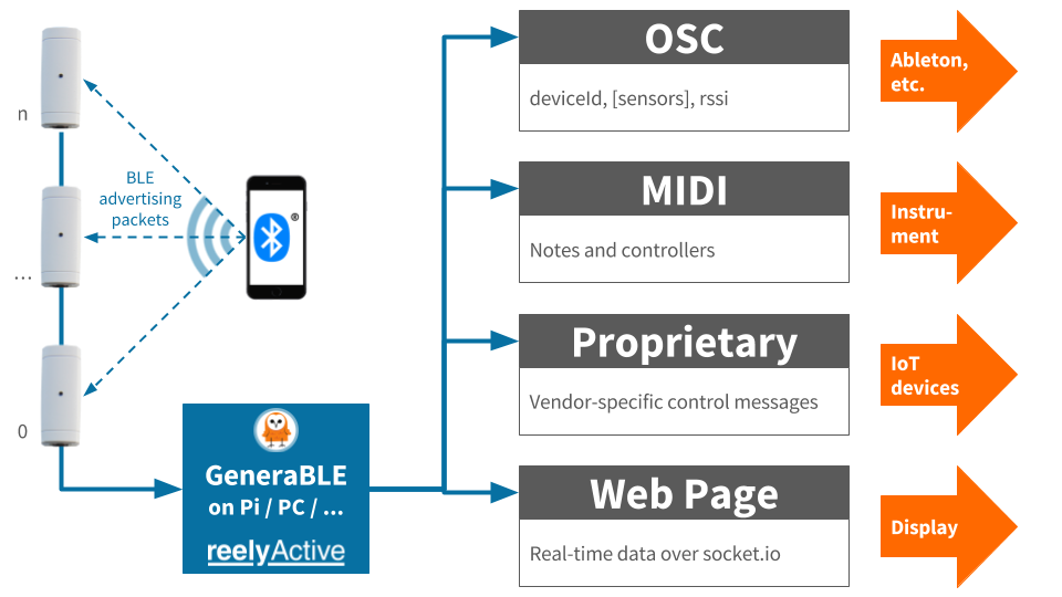 The intent of the GeneraBLE project is for all configuration to be completed through human-friendly web interfaces. The web interfaces currently supported include: Reel (BLE), Hue, MIDI and OSC.