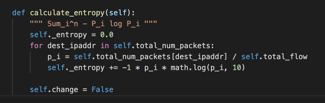 This is the implementation of how the entropy is calculated. Further, if it is greater than some threashold then all the communication through the DSN switch will terminate for certain time period.