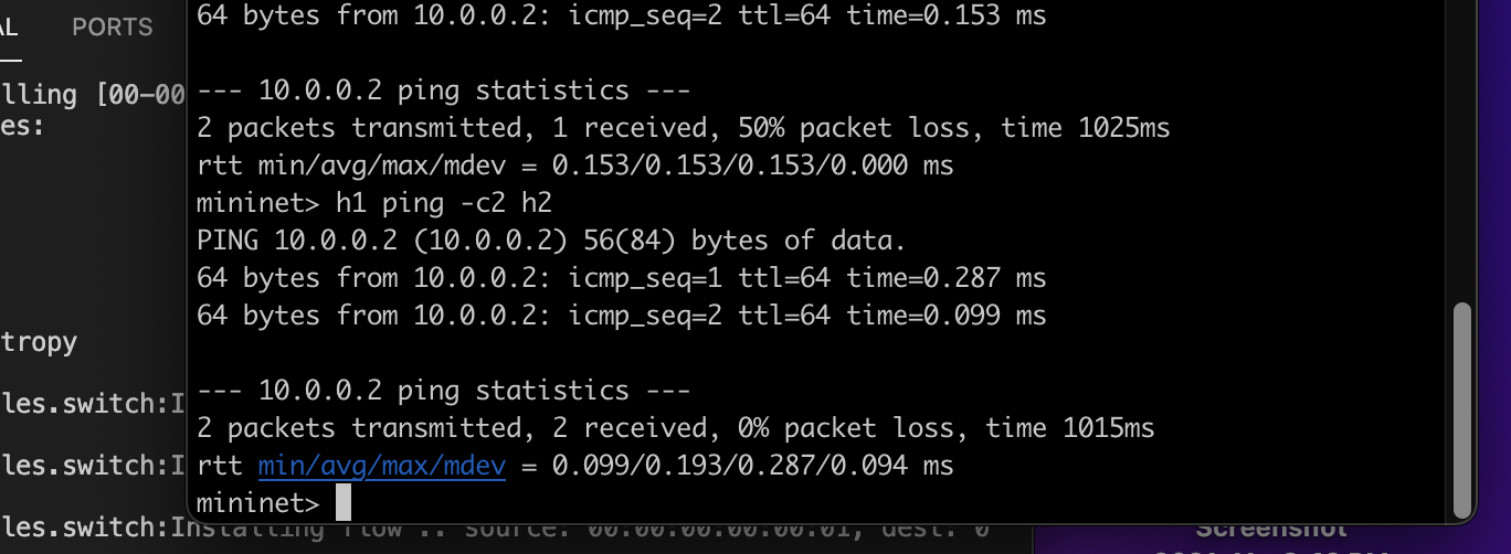 4. Run Mininet (3-host 1-switch topology)